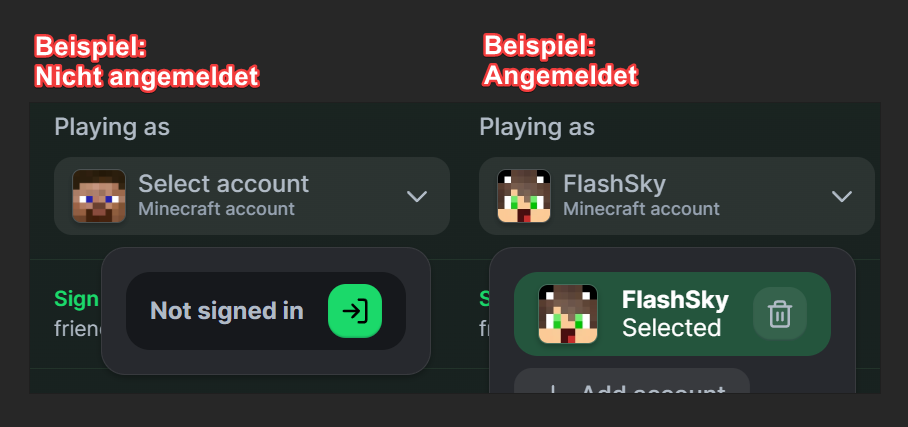 3. Sobald der Server geöffnet wurde, kannst du via Play-Button in Minecraft dich auf den Server verbinden.